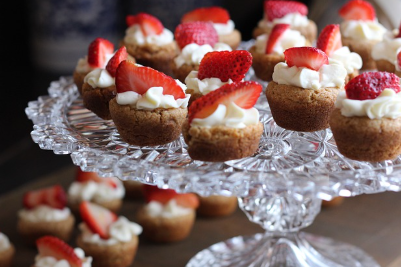딸기, 체리 등의 봄 과일 디저트에는 식용꽃이나 허브를 곁들이면 한층 더 화사한 느낌을 줄 수 있습니다.